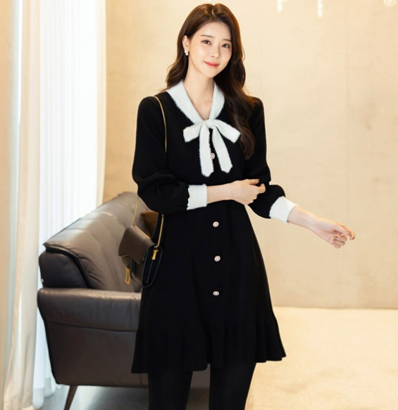 여성스러운스타일,데일리코디,세련된스타일,겨울하객룩,플리츠원피스,플레어니트원피스,연말데이트룩,데이트원피스,키작은여자원피스,a라인원피스