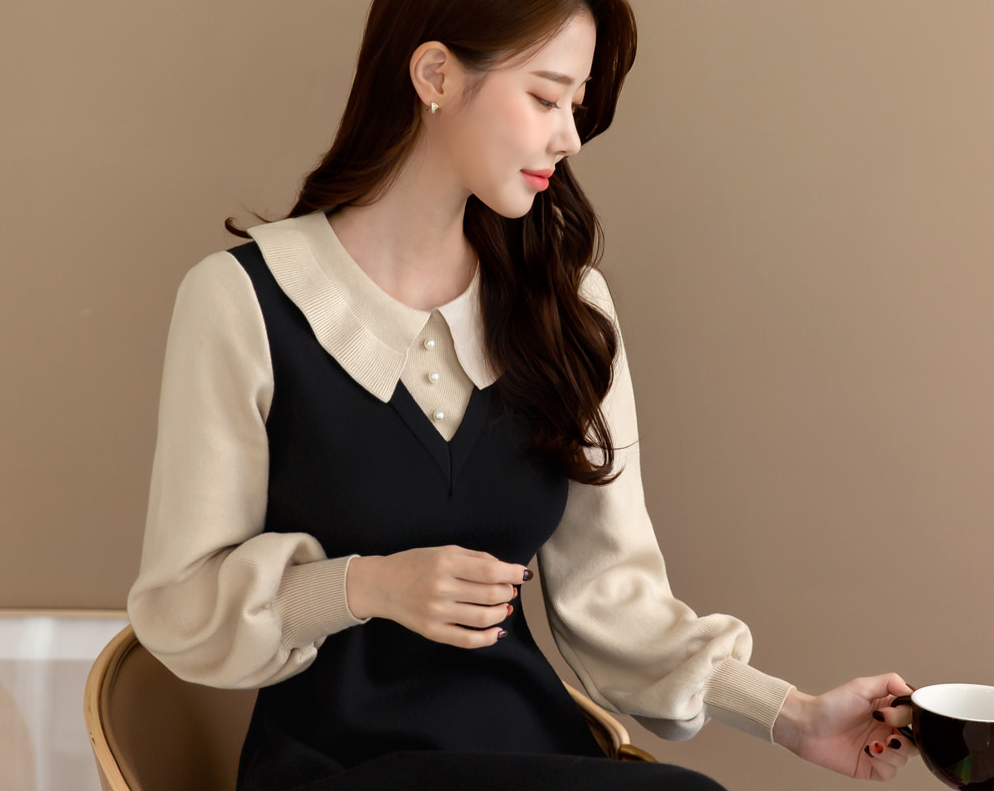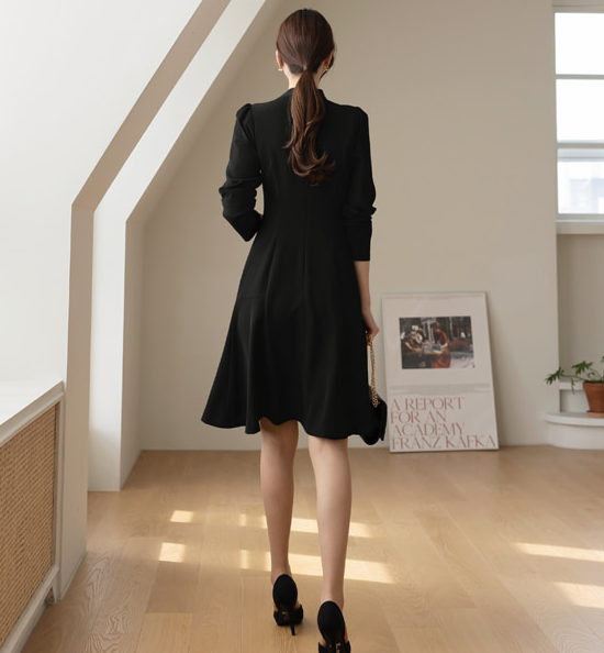 ■ 5. 하운드 레이스 카라 볼륨 숏 롱 원피스 - 62,910원